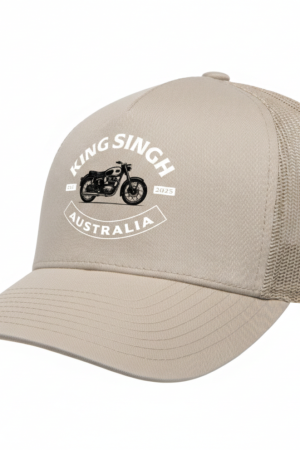 Designed for the journey. Defined by the ride. Crafted with a structured cotton front and ventilated mesh backing, the Royal Rider Trucker unites refined comfort with the bold spirit of the open road. The King Singh Bike emblem crowns the front panel — a tribute to strength, movement, and modern royalty in motion. A curved peak provides sun-ready protection, while the adjustable snapback closure ensures a tailored fit — a perfect companion from street to speedway.