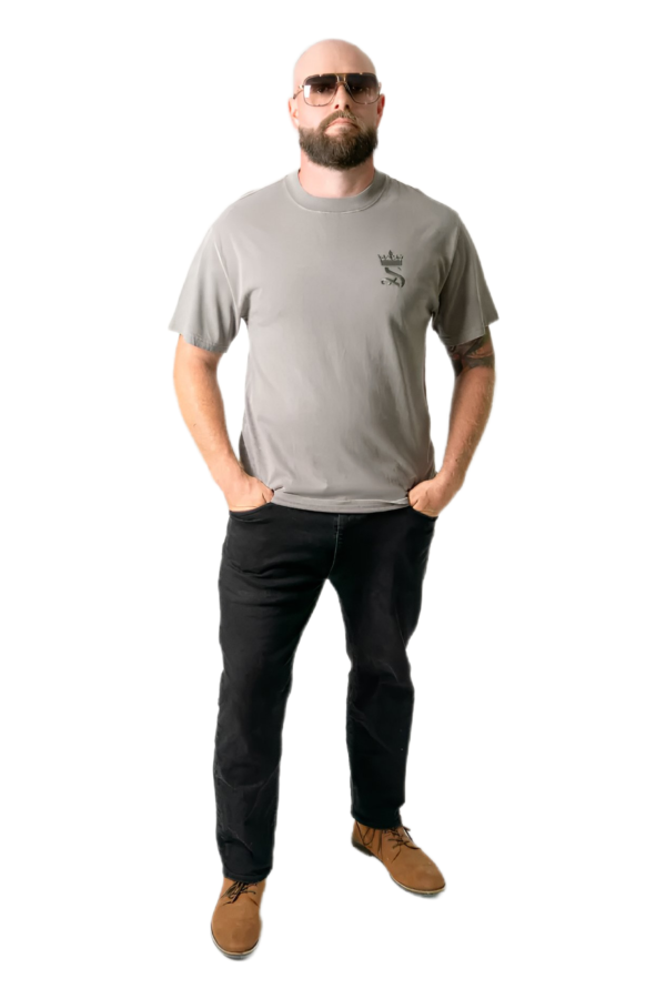 Crafted from a dense 240 GSM carded cotton, the Crowned Fade Relaxed Tee is garment-dyed for a rich faded tone and lived-in luxury. The shortened silhouette and dropped shoulders create a confident, street-led presence — reinforced by a bold, wide ribbed neckline. The tonal Crown & S embroidered monogram brings subtle power to the chest, while the burnt-orange faux leather King Singh Australia patch at the upper back seals the look with unmistakable identity. Created for kings who never need to shout — their presence says enough.